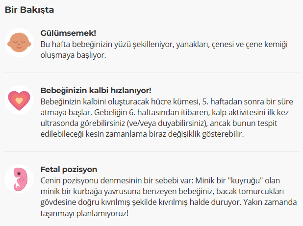 Bu hafta bebeğiniz artık daha çok bir bebeğe benzemeye başlıyor. Küçük yavrunuzun başı şekillenirken, yanaklar, çene ve çene kemikleri de oluşmaya başlıyor.