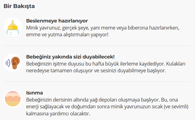 Bu arada, minik yavrunuz emmeyi ve yutmayı öğreniyor ve parmak izleri de oluşmaya başlıyor.