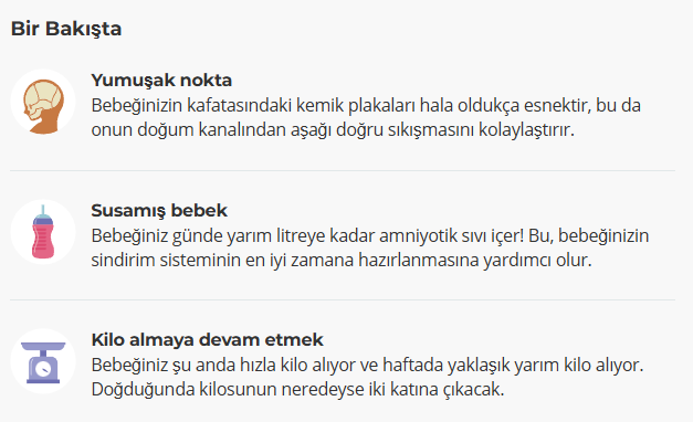 Artık bebeğiniz doğumda ölçeceği boya ulaşmış durumda, ancak hala haftada yaklaşık yarım kilo alıyor.