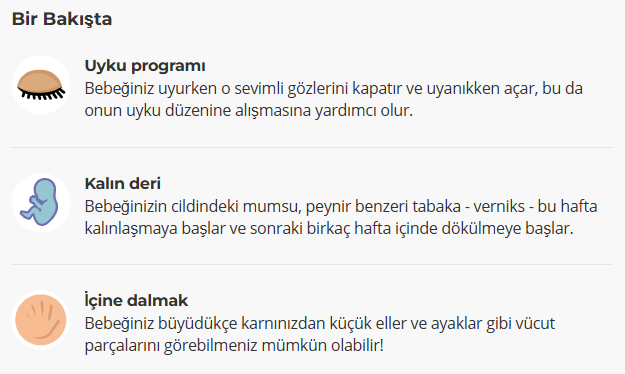 Bebekle ilgili diğer gelişmelerde ise, o minik tırnaklar muhtemelen artık parmak uçlarına ulaşmıştır ve doğum sonrası ilk manikürüne hazırlanıyordur.